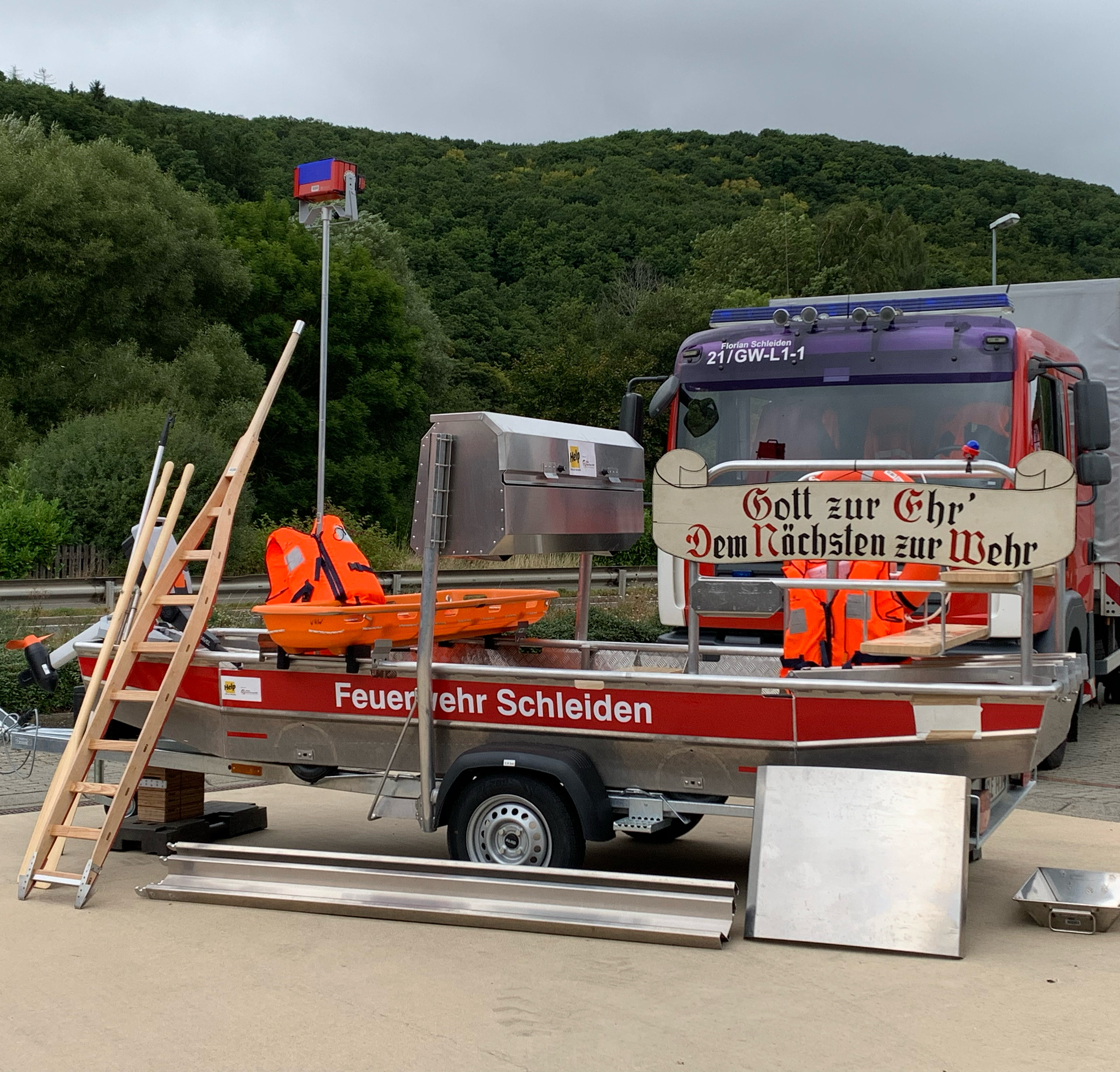 Ende August feierte die Feuerwehr Gemünd die Einweihung ihres neuen Rettungsbootes. In Anlehnung an den Schutzpatron der Schiffer und Seefahrer wurde das moderne Aluminiumboot feierlich auf den Namen „Nepomuk” getauft. Dank der Unterstützung der Hilfsorganisation „Help e.V.“ konnte die Stadt Schleiden diese Anschaffung tätigen.